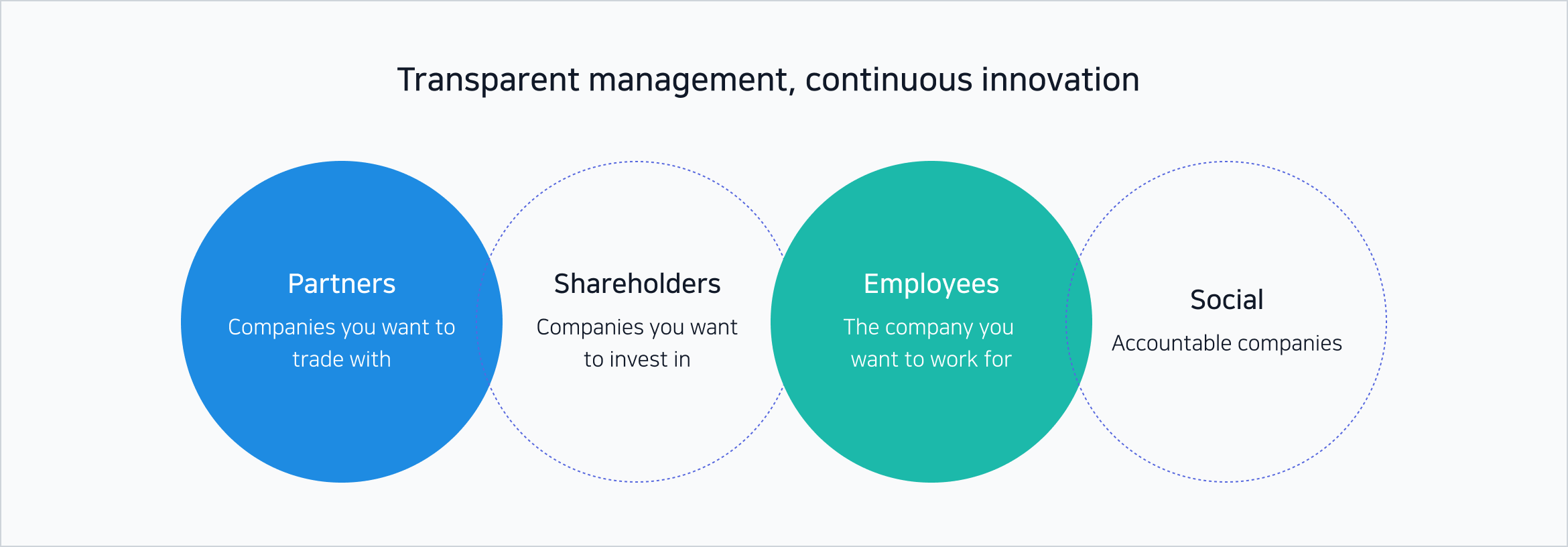 ③ “Company” and “Partners” strive to grow into a company more respected by society and achieve mutual growth by complying with this Code of Conduct.